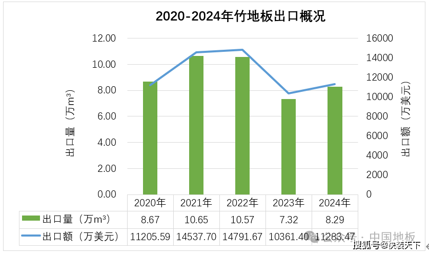 2024年中国竹地板出口量为8。29万立方米,同比增加13。16%。出口量前五的国度别离是美国(占比25。71%)、荷兰(占比11。40%)、马来西亚(占比10。96%)、法国(占比9。03%)、以色列(占比7。91%),马来西亚增加较快,由第十二位跃居至第三位。