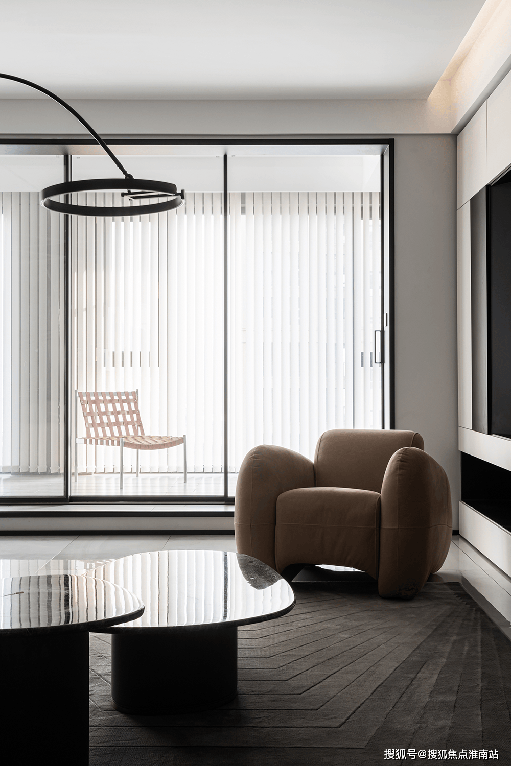 垂曲百叶窗将透过大落地窗照进家中的光线平均切开,营制出光影的结果,既了充脚的光线又无效了现私性。