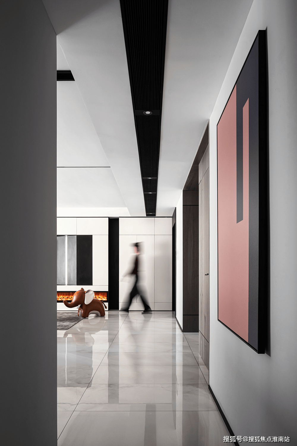 餐厅视角尽头是中厨,操纵了躲藏式推拉门设想了油烟,内部全体色调仍然以口角为从。过道墙壁细心设想为收纳空间,最大限度地操纵了每一块空间加强收纳功能。