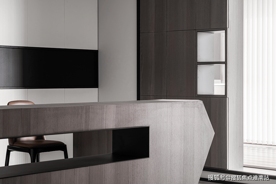 设想师将厨房拆分为厨,西厨使用了岛台和餐桌一体化的设想,白色岩板的岛台、胡桃木餐桌配以皮质餐椅,分歧材质之间的碰撞迸发出更具美感的火花。